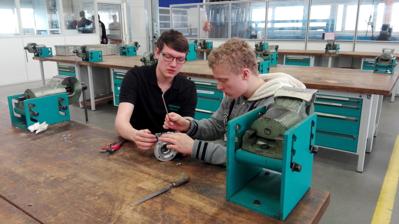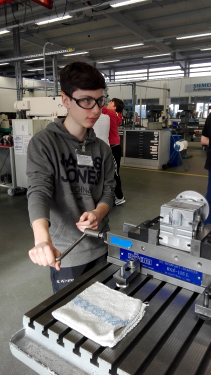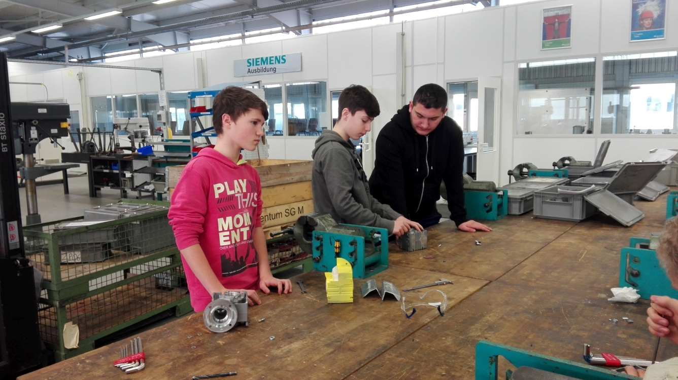Die Teilnehmer bei Siemens arbeiteten an dem Schnittmodell eines Schneckenradgetriebes. Dafür wurde als erster Schritt das Getriebe ausgefräst und danach aufgebaut. Zu guter Letzt wurde es noch lackiert. Während der ganzen Zeit dokumentierten sie den Verlauf ihrer Arbeit und stellten ihn am letzten Tag, an der Abschlussveranstaltung vor. Mit Witz und Charme schaffte es das Team Siemens den Arbeitsalltag aufzulockern.