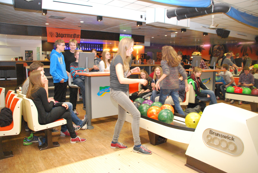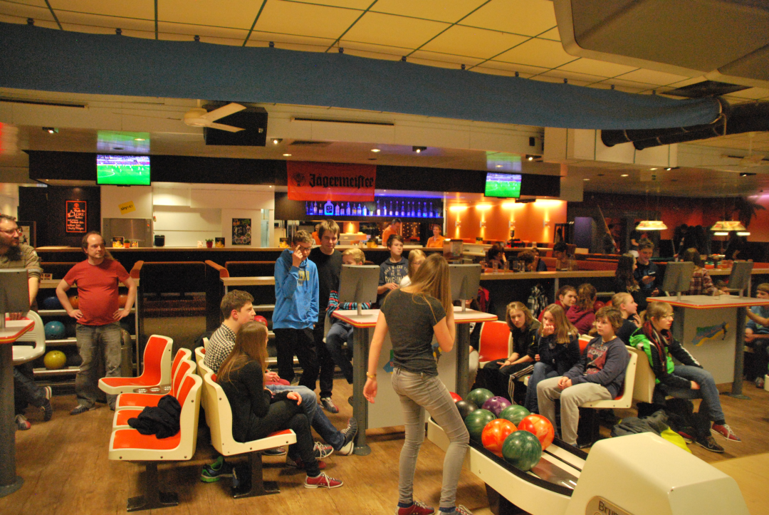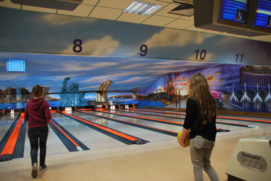 Gegen 19.30 Uhr ging es zum Bowlingcenter, auf modernen Bahnen konnten wir zwei Stunden lang unser Geschick beim Umwerfen der Pins beweisen.