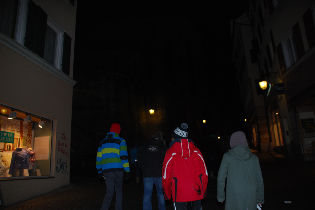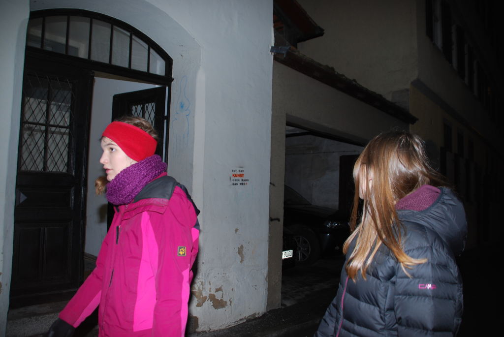 Am Dienstag Abend fand eine Stadtführung durch Tübingen mit allen Gruppen statt, bei der wir als Teilnehmer verschiedene Texte zu den verschiedenen Sehenswürdigkeiten bekamen und diese dann den Anderen vorlasen. Es gab neben vielen historischen Bauwerken wie den Holzmarkt und das Kornhaus auch gigantische Aussichten zu genießen. Los ging es auf der Eberhardsbrücke. Wir haben an der Stiftskirche, dem Schloss Hohentübingen, dem Nonnenhaus und noch weiteren historischen Gebäuden und auch Gassen Halt gemacht.